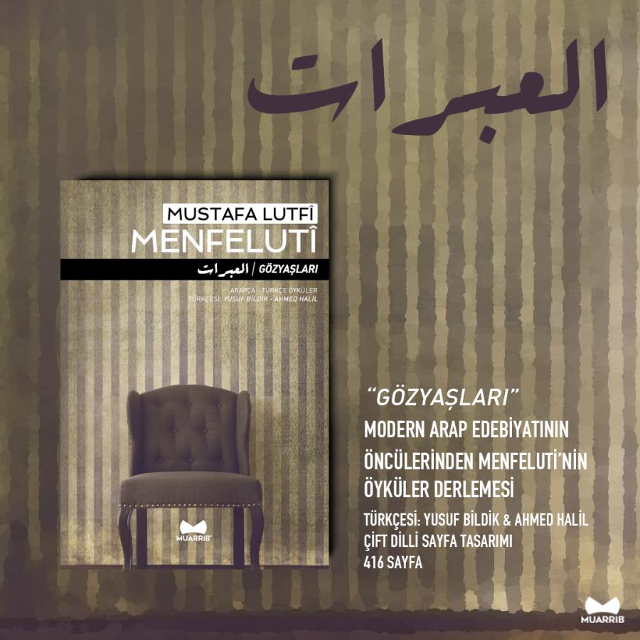 Gözyaşları, Muarrib'in 30. yayını. Modern dönem Arap edebiyatının öncü isimlerinden Menfeluti'nin (1876-1924, Mısır) öyküler derlemesi olan Gözyaşları kitabının, Türkçeye tercümeyi ise Yusuf Bildik ve Ahmet Halil üstlendi. Son okuması Hüseyin Örs tarafından gerçekleştirildi.