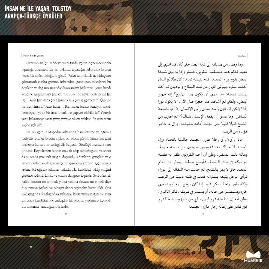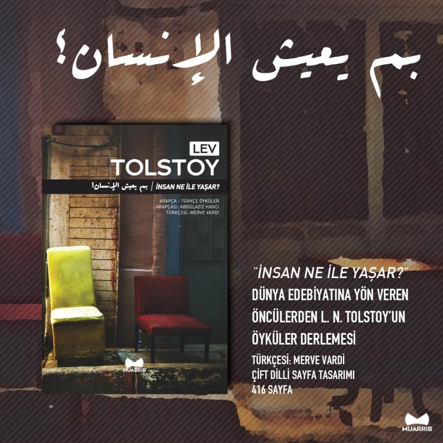 İnsan Ne İle Yaşar?, Muarrib'in 23. yayını. Dünya edebiyatının en önemli isimlerinden Tolstoy'un öyküler derlemesi. Arapçaya tercümesi Abdülaziz Hancı, Arapçadan Türkçeye tercümesi ise Merve Vardi tarafından gerçekleştirildi.